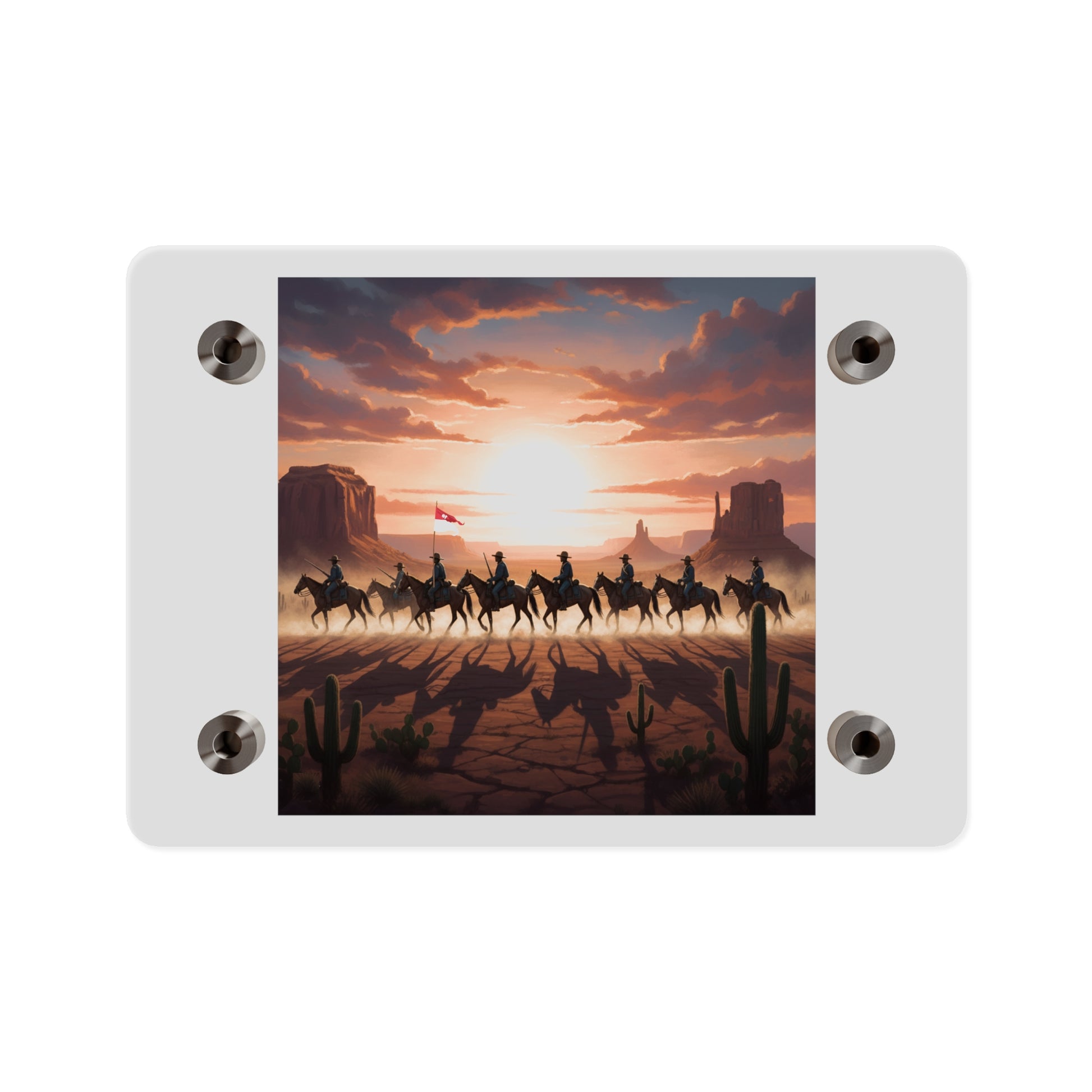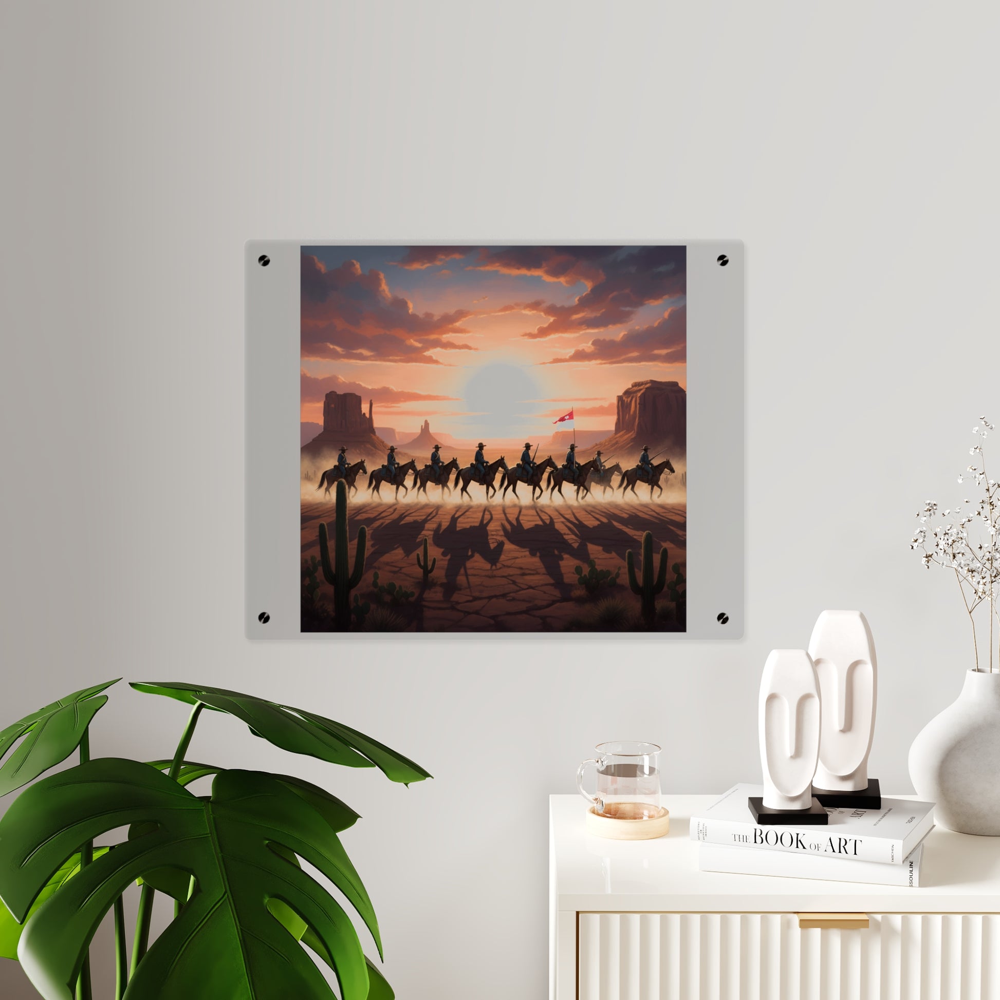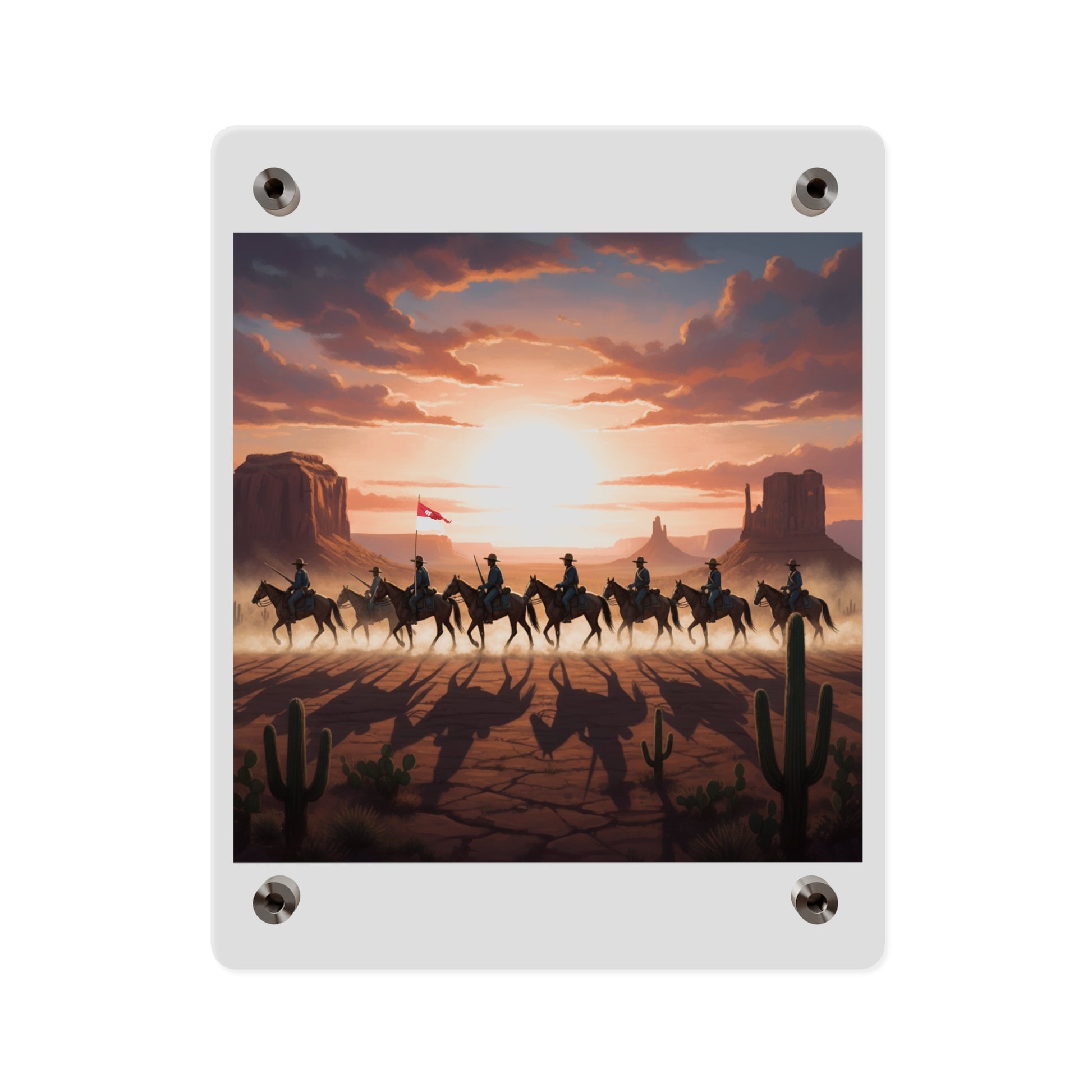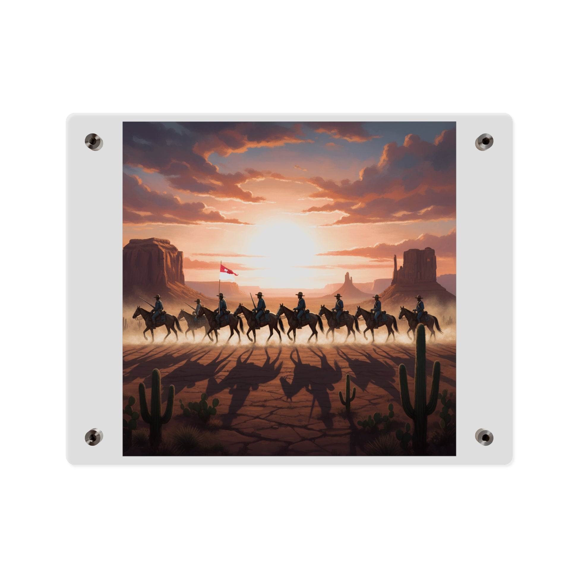 Acrylic Wall Art Panel - 10th Cavalry on Patrol in the sunset w 10th Cav Guidon