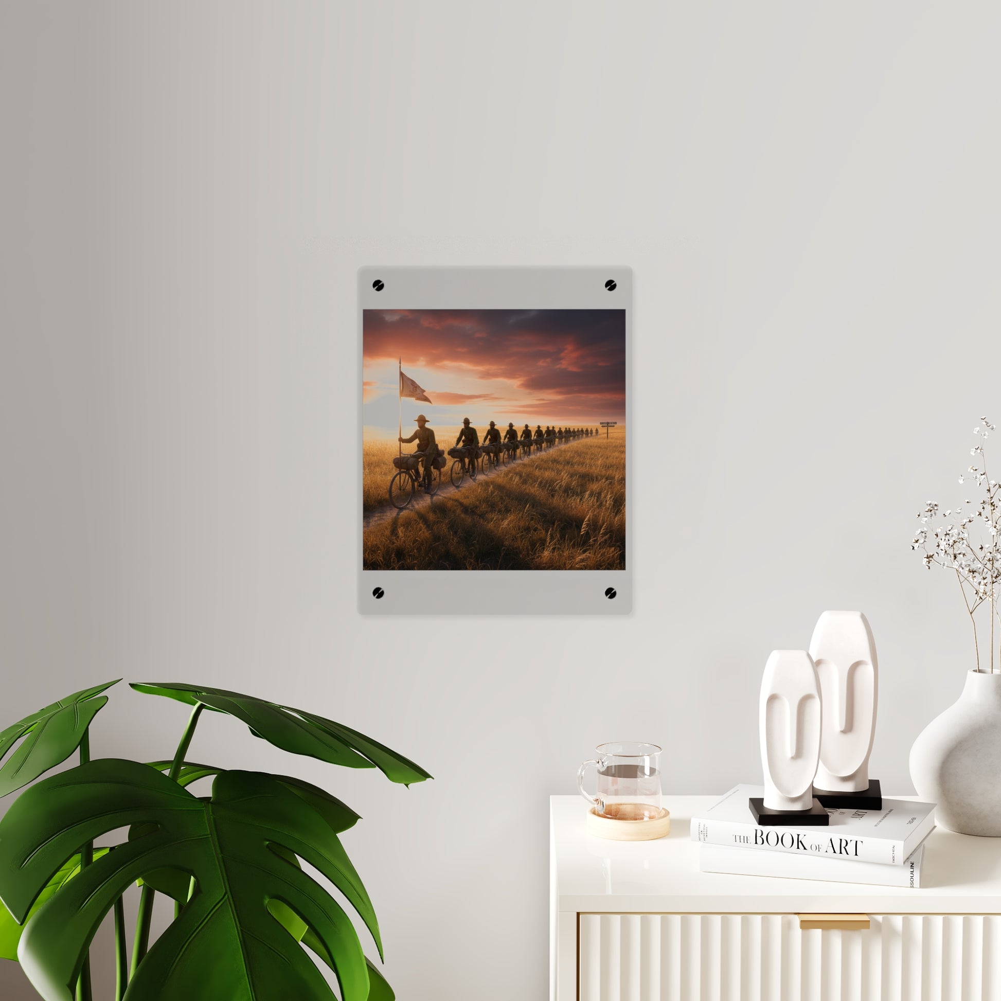 Acrylic Wall Art Panel - E Company 25th Infantry Buffalo Soldiers Bicycle Corps with Guidon on the Prairie at Sunset
