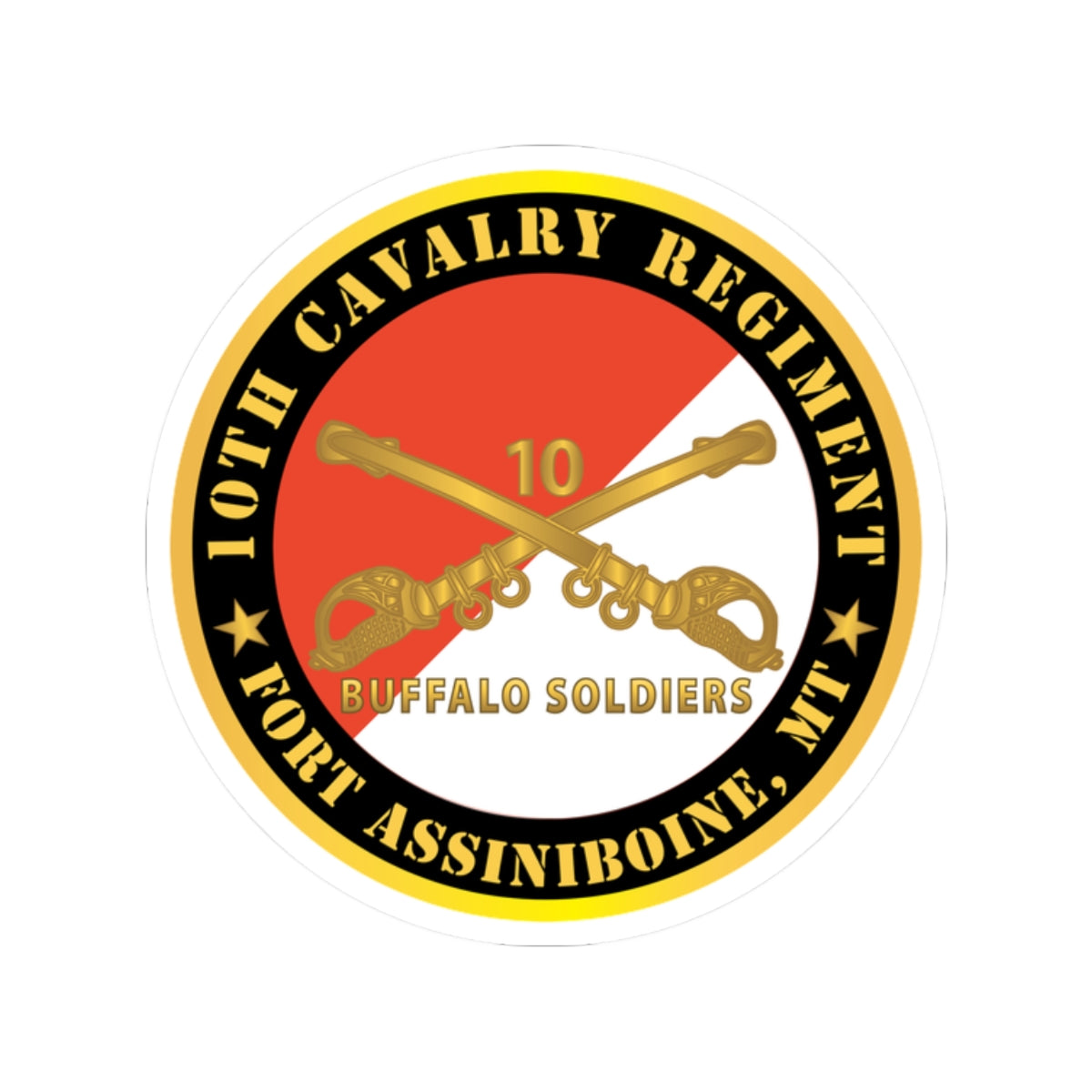 Kiss-Cut Stickers - Army - 10th Cavalry Regiment - Fort Assiniboine, MT - Buffalo Soldiers w Cav Branch