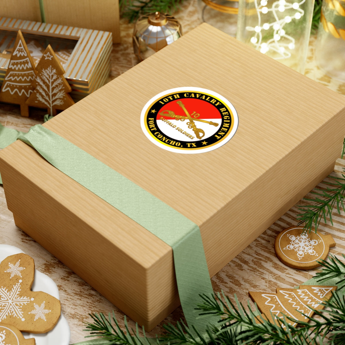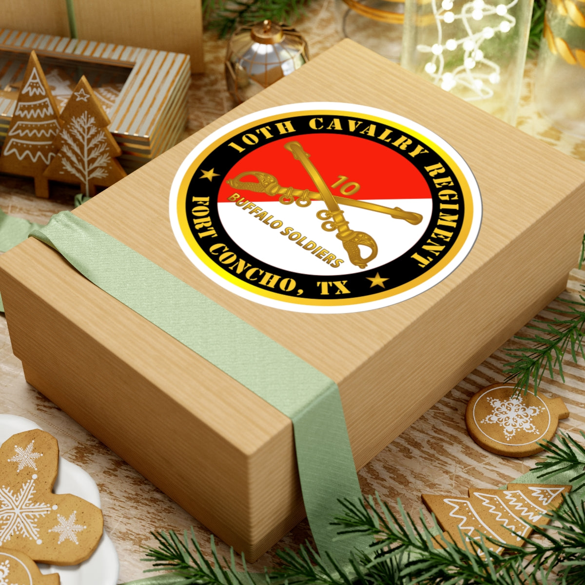 Kiss-Cut Stickers - Army - 10th Cavalry Regiment - Fort Concho, TX - Buffalo Soldiers w Cav Branch