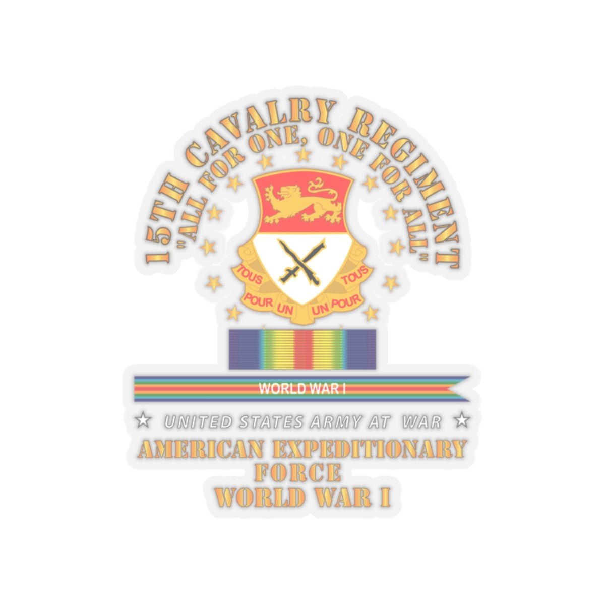 Kiss-Cut Stickers - Army - 15th Cavalry Regiment - All for One - AEF w SVC WWI