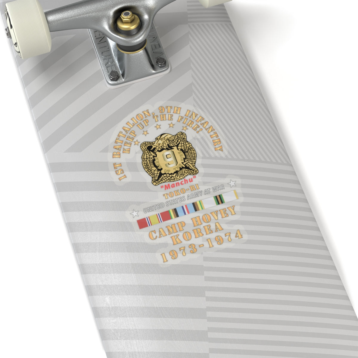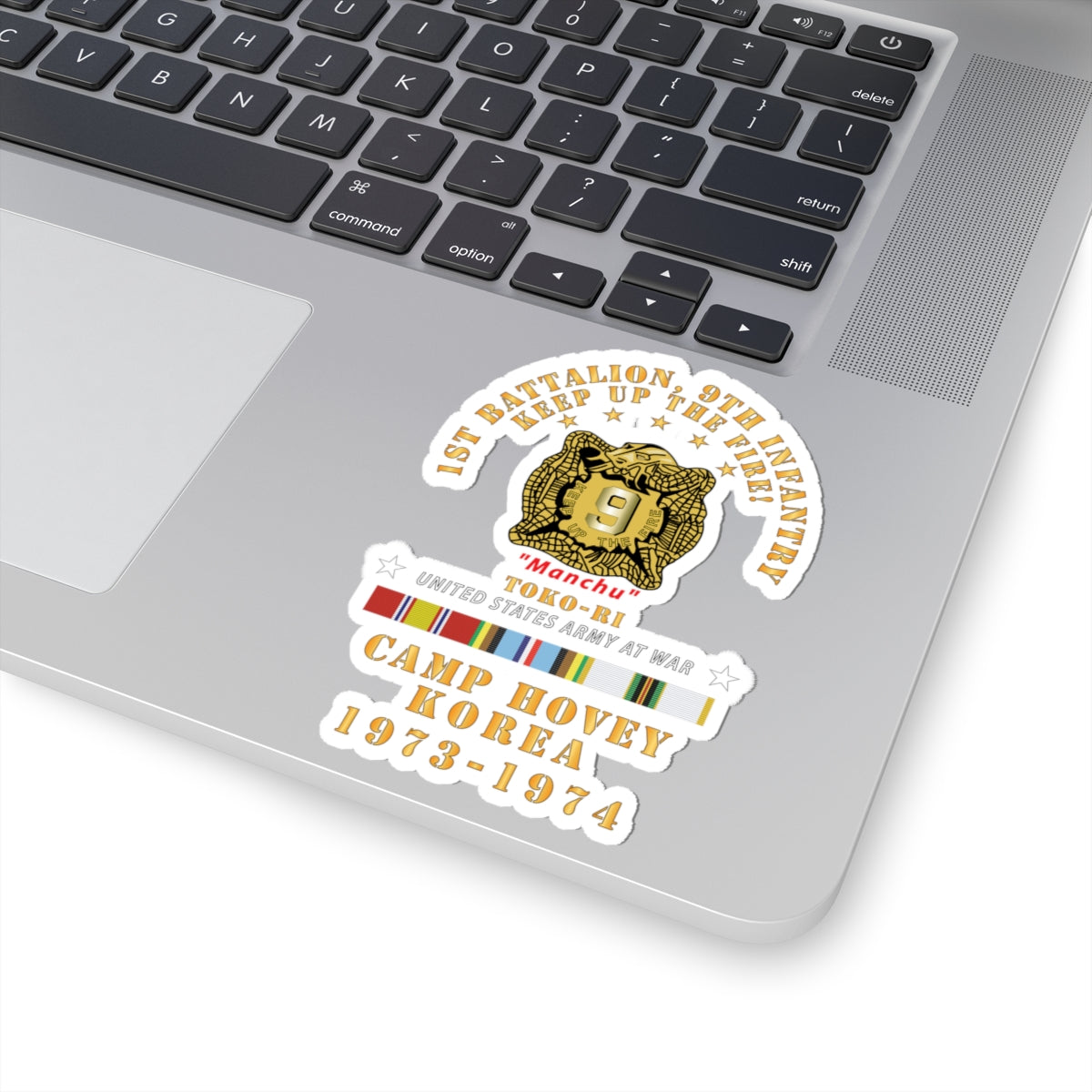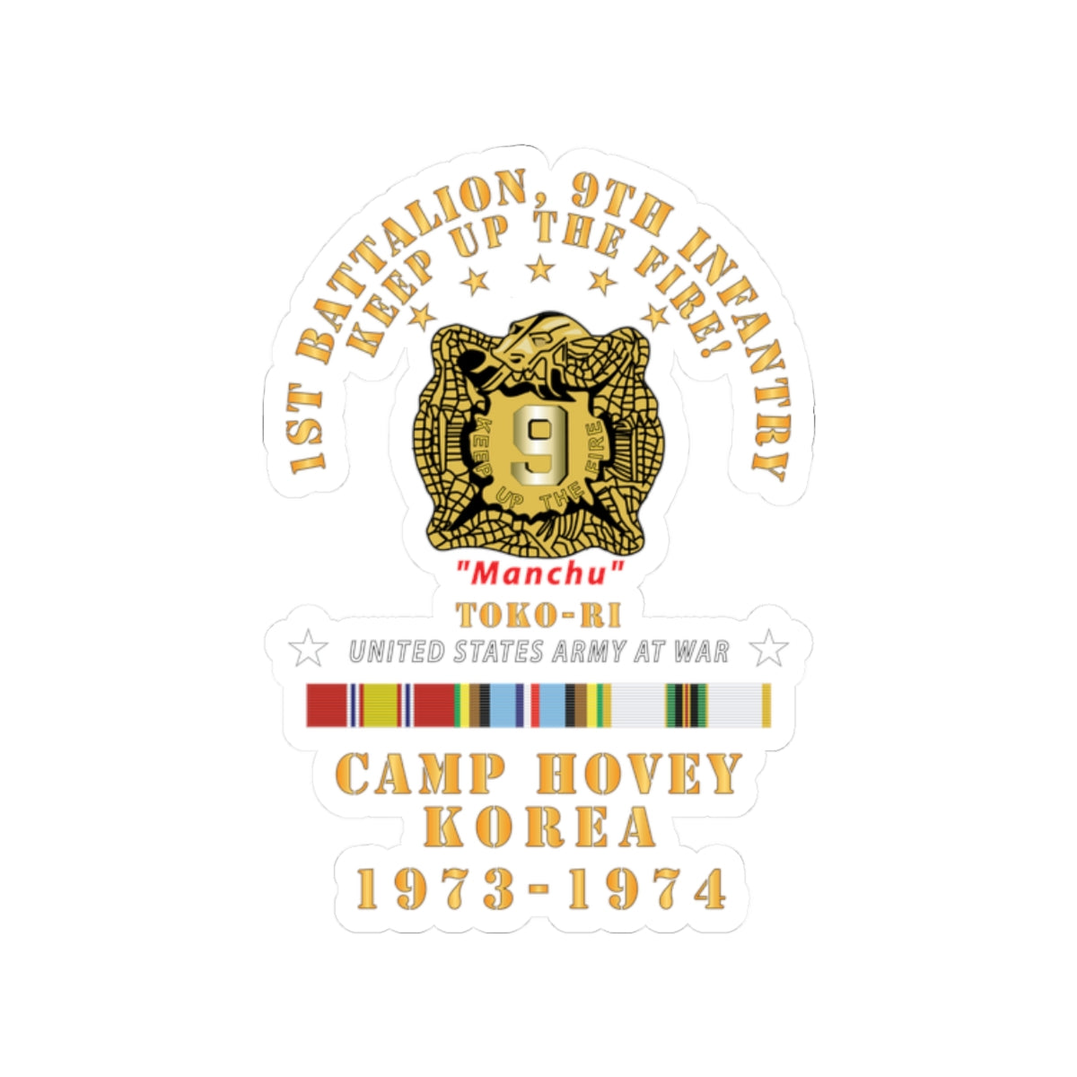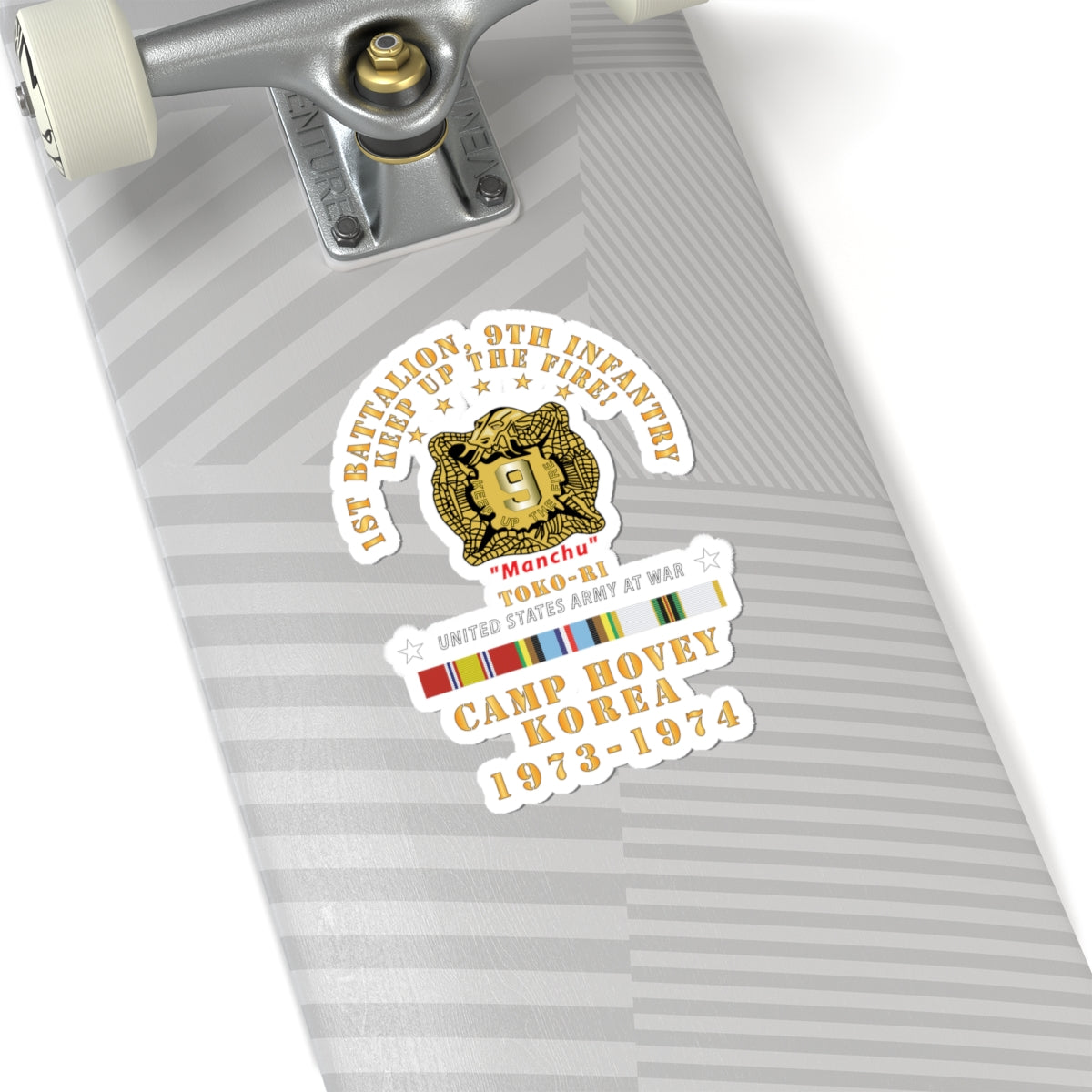 Kiss-Cut Stickers - Army - 1st Battalion, 9th Infantry - Manchus - Keep Up the Fire - Camp Hovey Korea - Toko-ri w AFEM - COLD SVC