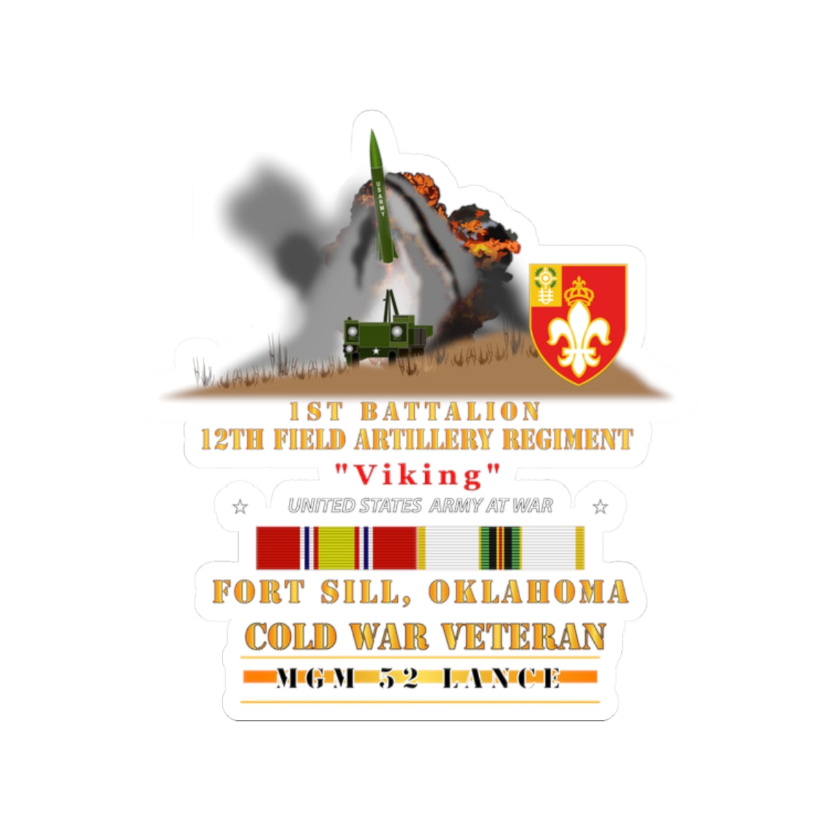 Kiss-Cut Stickers - Army - 1st Bn, 12th FAR, Ft Sill, OK, MGM 52 - Lance - COLD X 300