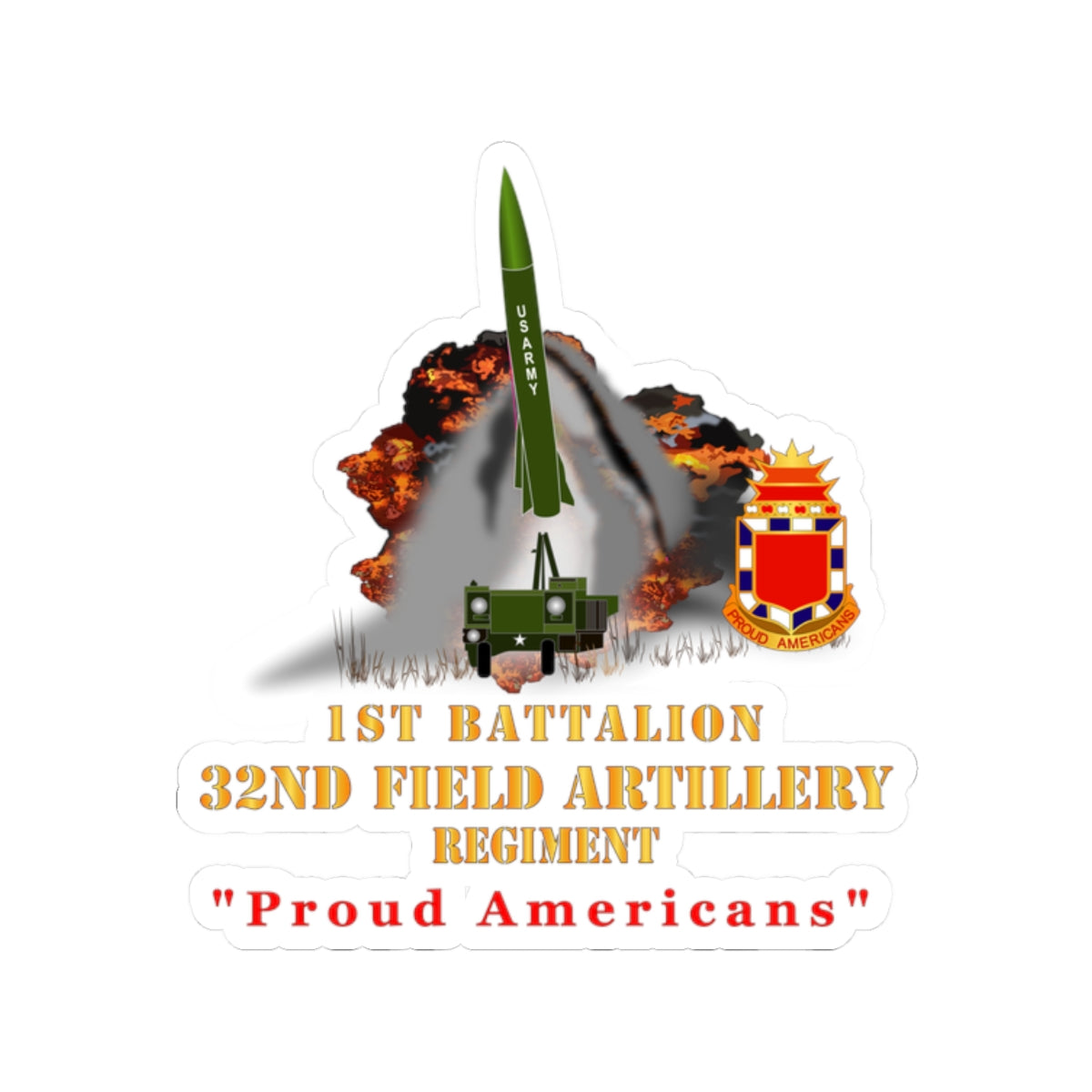 Kiss-Cut Stickers - Army - 1st Bn, 32nd FAR, Proud Americans - MGM 52 - Lance - Short X 300