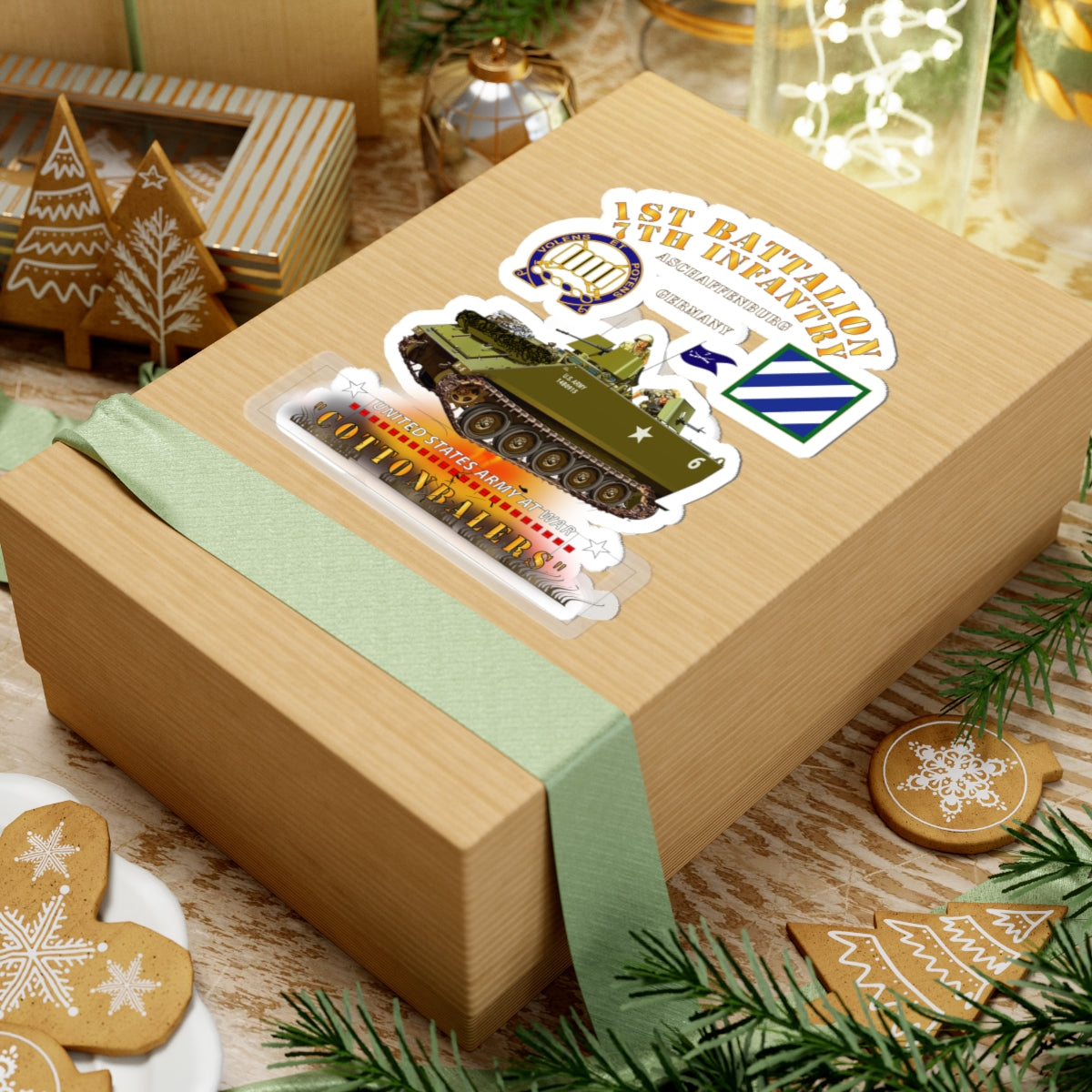 Kiss-Cut Stickers - Army - 1st Bn 7th Infantry - Aschaffenburg FRG - M113 APC - CottonBalers X 300