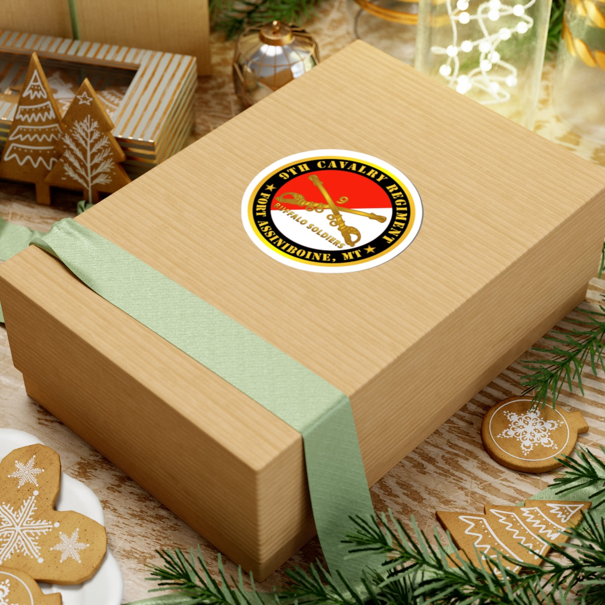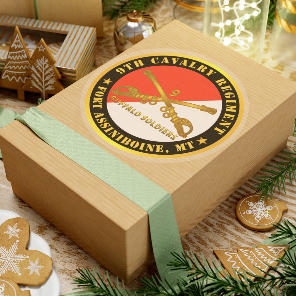 Kiss-Cut Stickers - Army - 9th Cavalry Regiment - Fort Assiniboine, MT - Buffalo Soldiers w Cav Branch