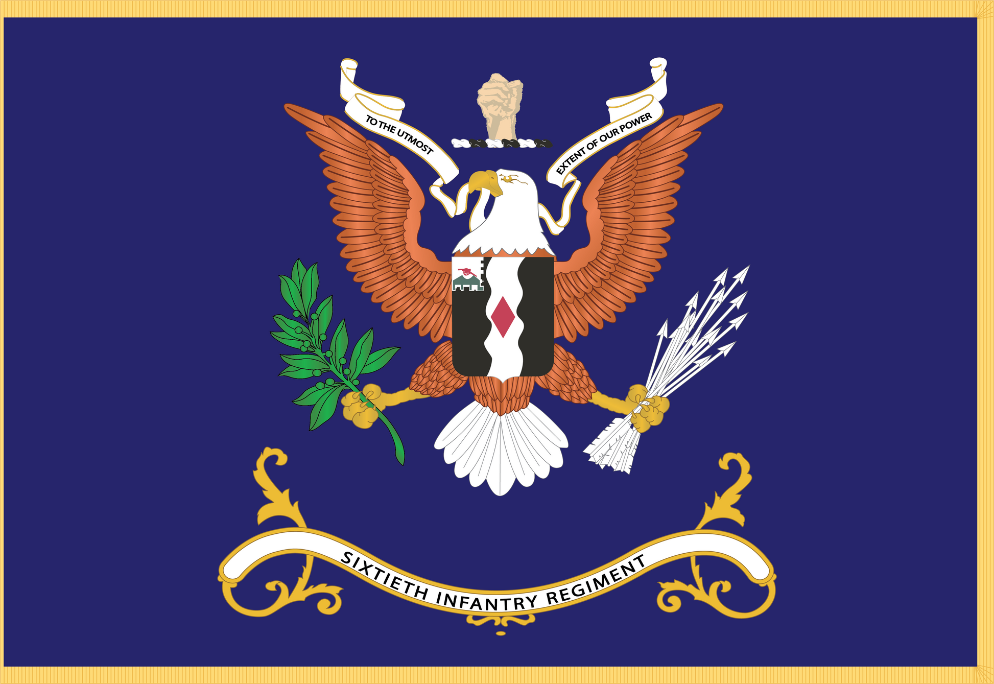 Rectangle Flags - Army - Regimental Colors - 60th Infantry Regiment - TO THE UTMOST EXTENT OF OUR POWER Flag w Fringe X 300